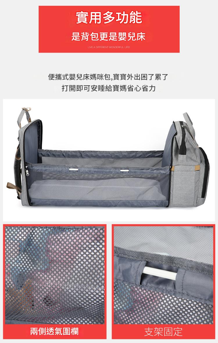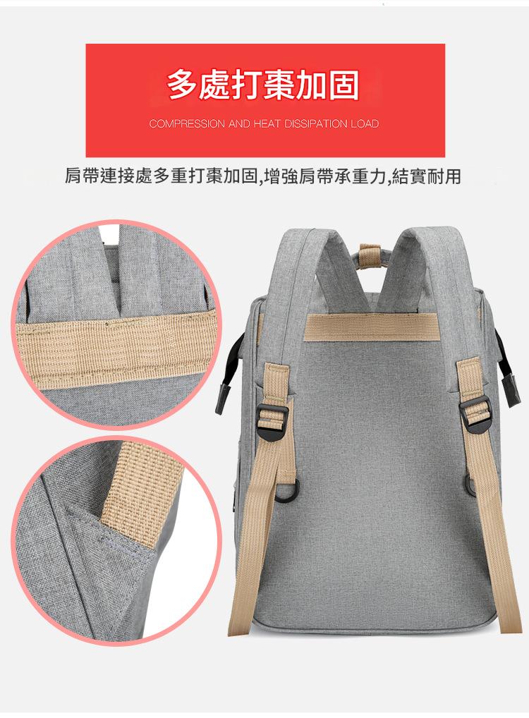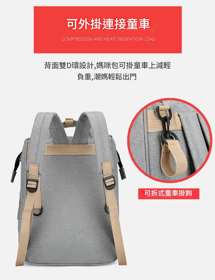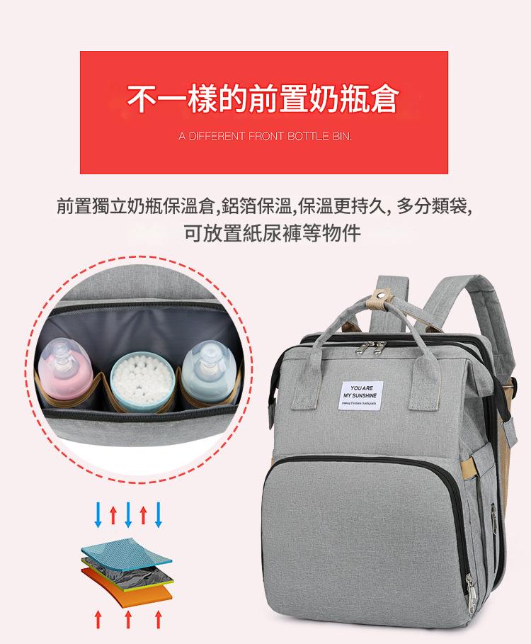 一秒變身: 背包後方拉開即成橫向空間的摺疊床,外出便攜可折疊加厚隔尿墊,能隨時更換尿布,透氣不悶熱。