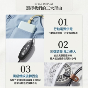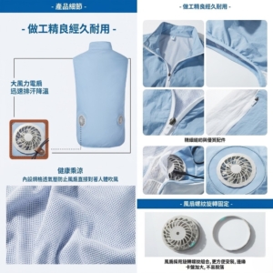 🔍 降溫空調服馬甲背心NT$630 商品特色: USB 供電: 行動電源隨插即用,走到哪涼到哪 一鍵降溫: 告別黏膩感,背部不再濕一片 透氣網眼: 就算沒開風扇,特選布料也能自然排熱 顏色 天藍色深藍色淺灰色軍綠色請選取一個選項天藍色深藍色淺灰色軍綠色 尺寸 請選取一個選項SMLXL2XL3XL4XL清除 降溫空調服馬甲背心 數量 加入購物車 描述 告別「濕背秀」!這件背心,是夏天的最後一道防線。🚲 不管是騎單車、趕公車,還是不想在家開冷氣?這件 #冰絲風扇背心 就是你的救星。 USB 供電: 行動電源隨插即用,走到哪涼到哪。 一鍵降溫: 告別黏膩感,背部不再濕一片。 透氣網眼: 就算沒開風扇,特選布料也能自然排熱。 小資族的清涼方案,省下電費,賺到舒服。 相關商品 循環風扇空調服外套 NT$680 選擇規格 此產品有多種款式。 可在產品頁面選擇選項 夏季行走降溫背心馬甲服 NT$820 選擇規格 此產品有多種款式。 可在產品頁面選擇選項 多功能大容量媽咪包・內置折疊式嬰兒床 NT$360 選擇規格 此產品有多種款式。 可在產品頁面選擇選項 輕量涼感馬甲風扇衣空調服 NT$650 選擇規格 此產品有多種款式。 可在產品頁面選擇選項