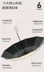 • 加大傘面保護: 加厚加大傘面設計,提供更廣的遮蔽面積,確保肩膀與背包不淋濕。